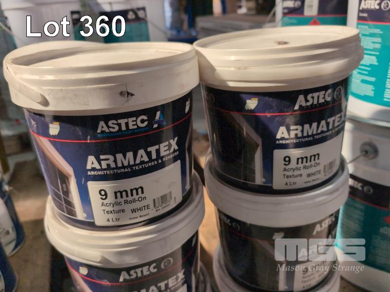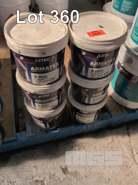 6 X 4 LITRE PAILS OF ASTEC ARMATEX 9 MM ACRYLIC ROLL-ON TEXTURE. COLOUR WHITE.