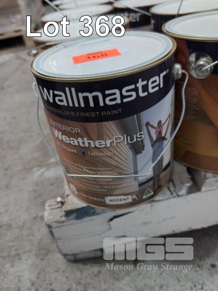 12 X 4 LITRE TINS WALLMASTER WEATHERPLUS LOW SHEEN EXTERIOR PAINT. COLOUR ACCENT.