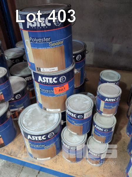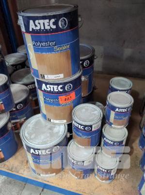 ASTEC POLYESTER SEALER - CLEAR. FOR FURNITURE, FLOOR, DOORS, WINDOWS SKIRTING BOARDS & SIDEBOARDS. 6 X 4 LITRE TINS. 4 X 1 LITRE TINS. 9 X 500 ML TINS.