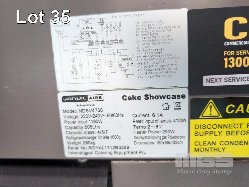 CAKE DISPLAY, MOD: NDSV4750 605 LITRE 1500 (L) x 670 (W) x 1300mm (H) 240V