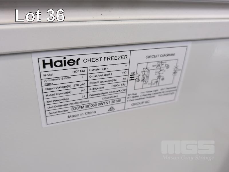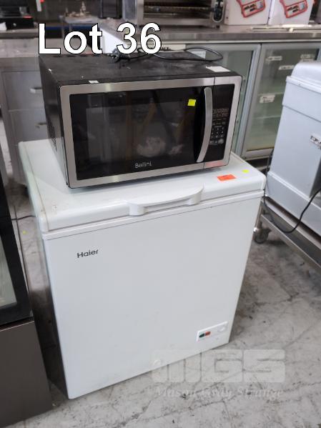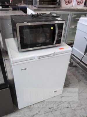 CHEST FREEZER, HAIER S/NO: B30FMBE060WTB130146 143 LITRE & MICROWAVE OVEN, BELLINI 900w, 240V