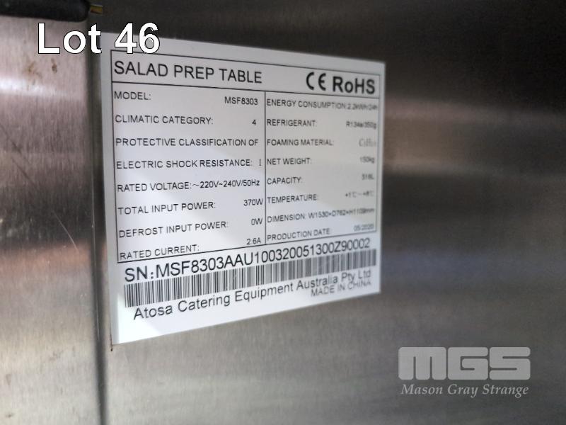 PREP FRIDGE, ATOSA MOD: MCF8303 S/NO: 100320051 2 DOOR, 153cm STAINLESS STEEL CASED, 240V