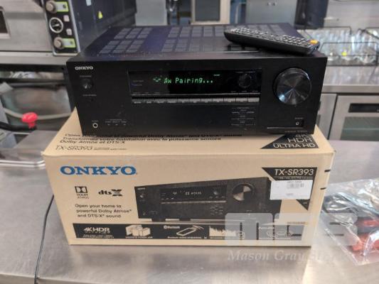1 X ONKYO TX-SR393 AV RECEIVER WITH REMOTE. NEW IN BOX.