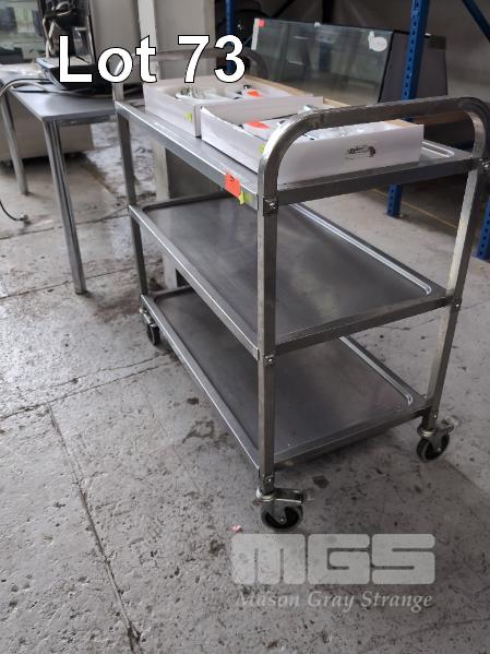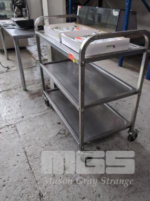 1 X 3-TIER STAINLESS STEEL MOBILE SERVING TROLLEY. 950 X 500 X 940 MM (W D H)