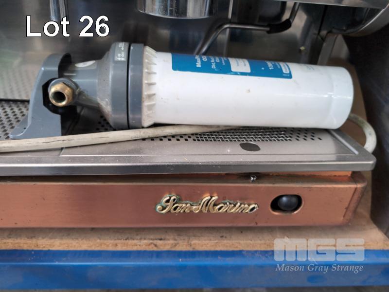 1 X SAN MARINO 2-HEAD ESPRESSO MACHINE AND GRINDER. ** CONDITION UNKNOWN **