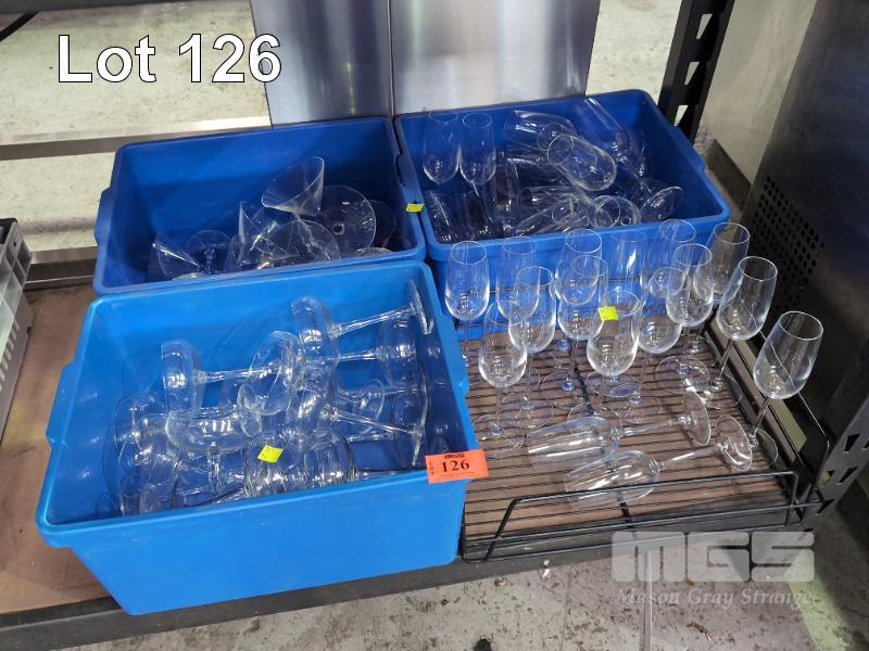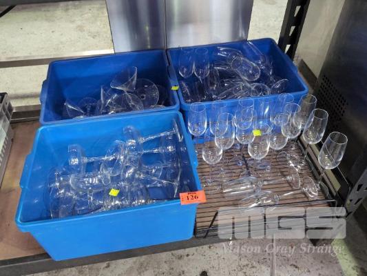 ASSORTED GLASSWARE INCLUDING, FLUTES, MARTINI & COCKTAIL, 4 x TUBS