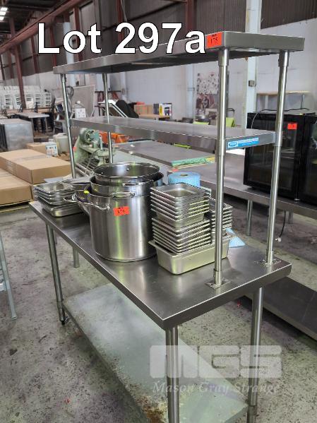 STAINLESS STEEL TOP PREP BENCH, 152 x 61cm WITH 2 TIER OVERSHELF, RUSTED GALV BOTTOM SHELF