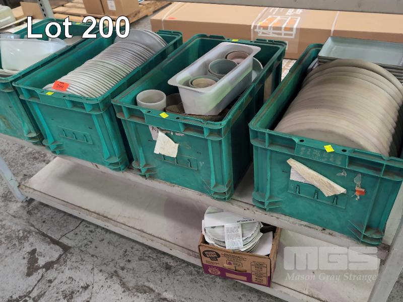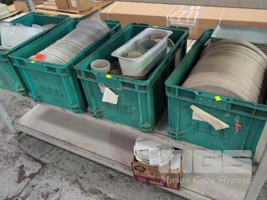 ASSORTED PLATES, SIDE PLATES, BOWLS, ETC, 1 x SHELF (TUBS NOT INCLUDED)