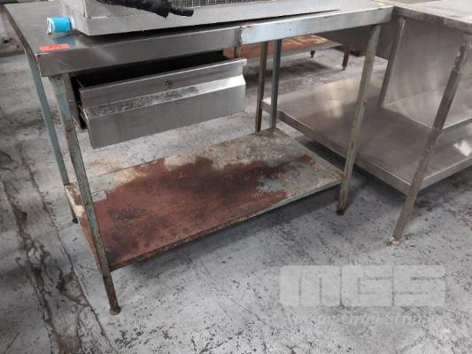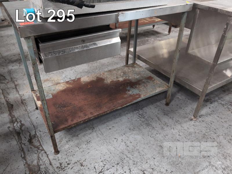 STAINLESS STEEL TOP & GALV BENCH, 1100 x 600 x 900mm (H) RUSTED BOTTOM SHELF