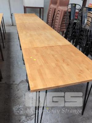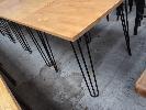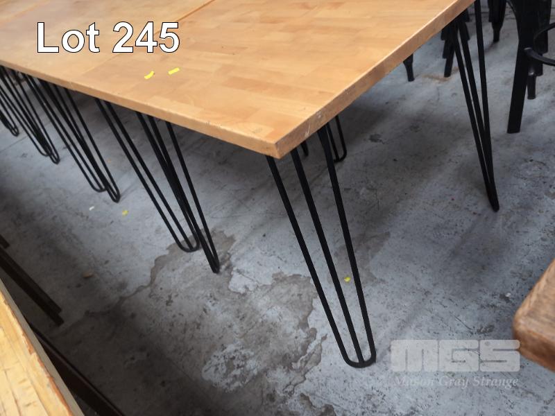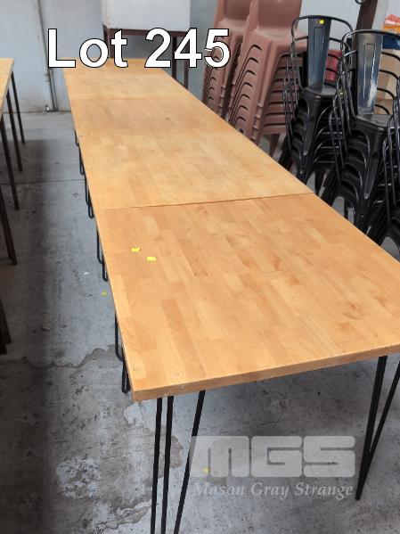 5 x CAFE TABLES, SOLID TIMBER TOP, BLACK STEEL FRAME 800 x 800mm
