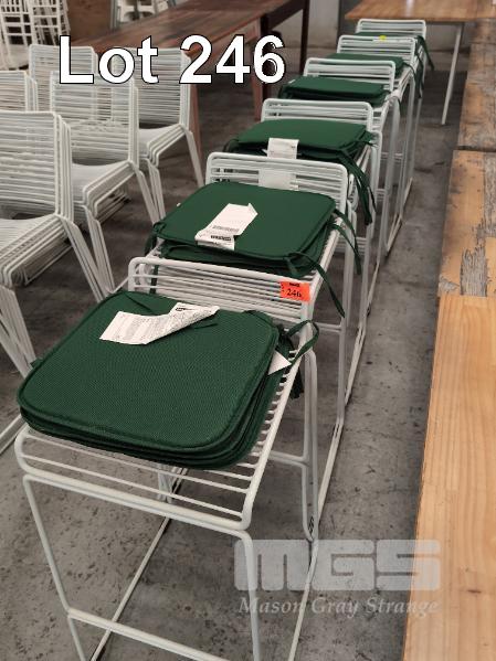 16 X STOOLS, WHITE WIRE COATED WITH CUSHIONS.