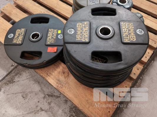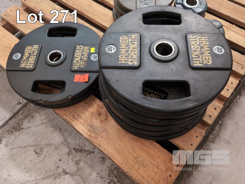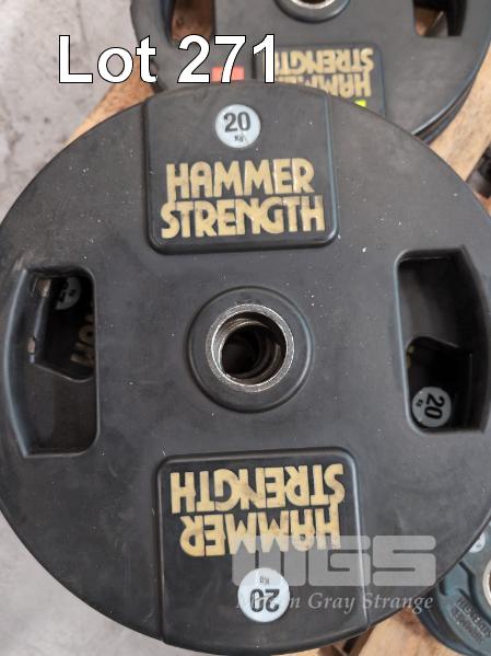 8 X 20 KG HAMMER STRENGTH RUBBER COATED BUMPER PLATES.