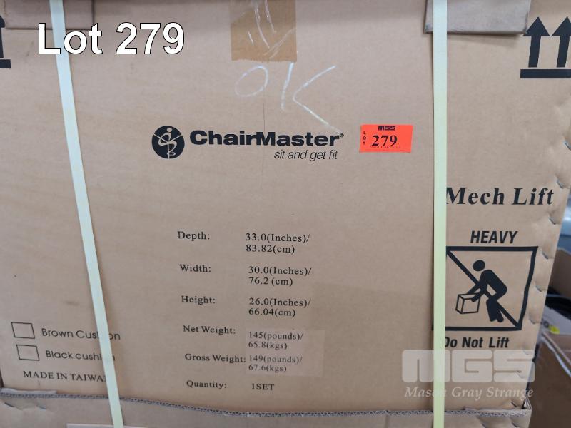1 X CHAIRMASTER "SIT & GET FIT" RESISTANCE EXERCISE LOUNGE CHAIR IN BROWN VINYL. NEW IN BOX.