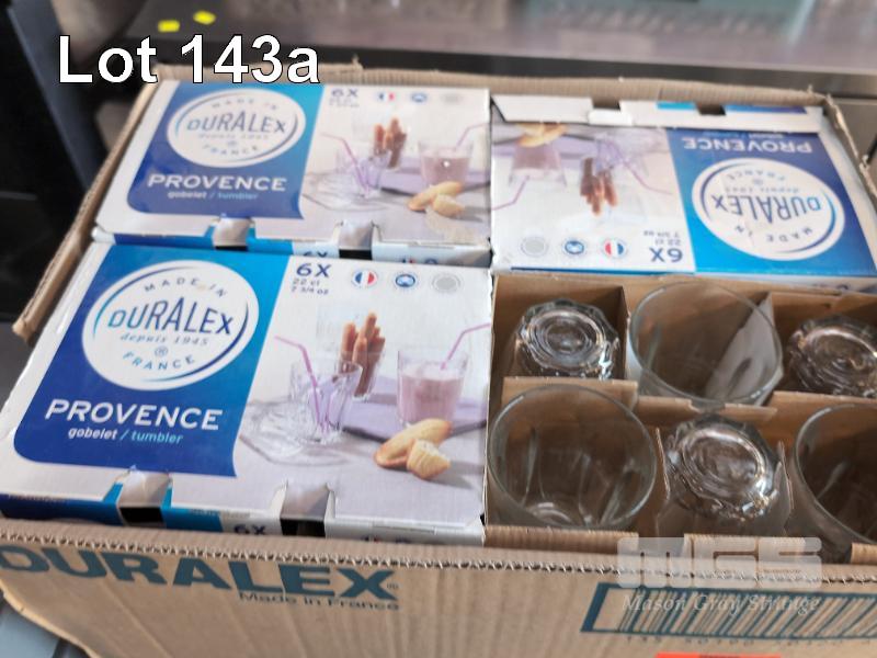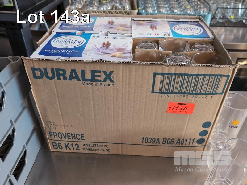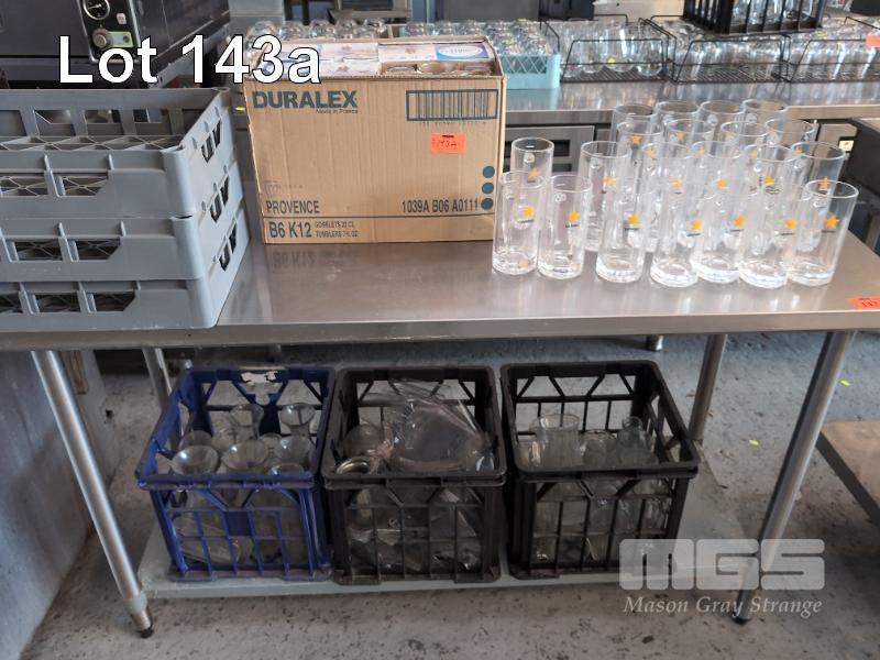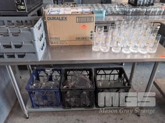 ASSORTED QUALITY GLASSWARE ETC. 15 X 500 ML SAPPORO BEER STEINS. 8 X 300 ML SAPPORO BEER STEINS. 48 X 220 ML DURALEX TUMBLERS. 3 X CRATES WINE CARAFES & SUNDAE GLASSES. 3 X GLASS TRAYS.