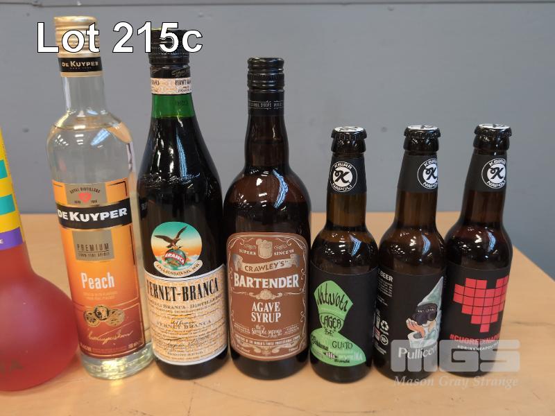 7 X BOTTLES ASSORTED SPIRITS, LIQUEURS & BRANDY. 1 X 750 ML BOTTLE AGAVE SYRUP. 3 X 330 ML ASSORTED CRAFT BEERS. CONTENTS 1 X TUB (TUB NOT INCLUDED).