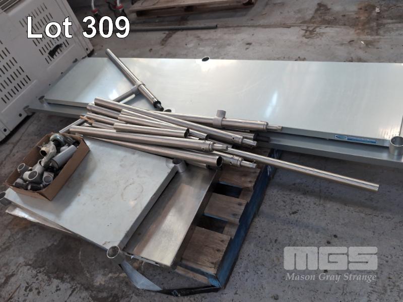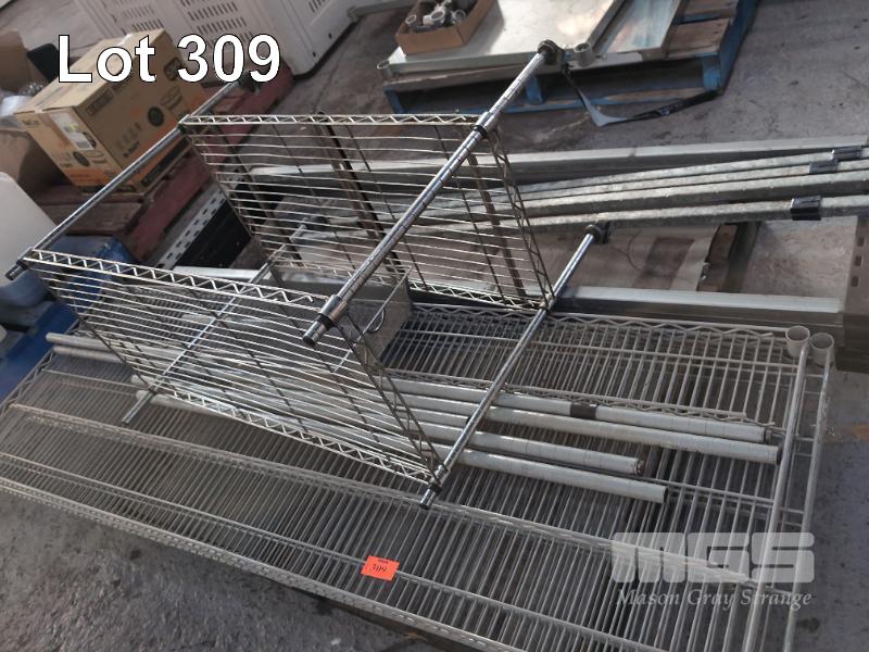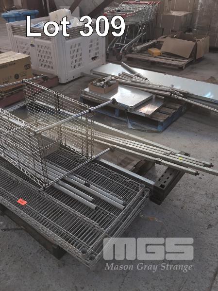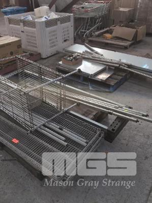2 X PALLETS DISASSEMBLED STAINLESS STEEL KITCHEN PREP BENCHES AND FOOD STORAGE RACKS.
