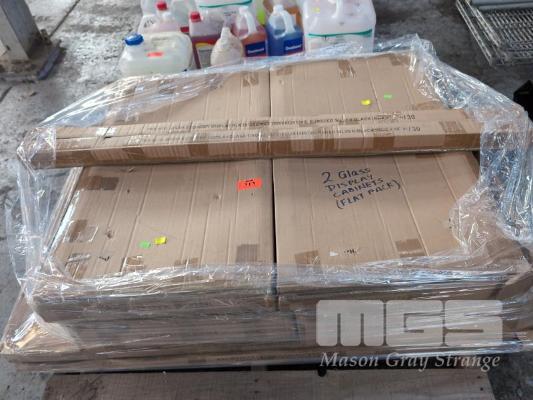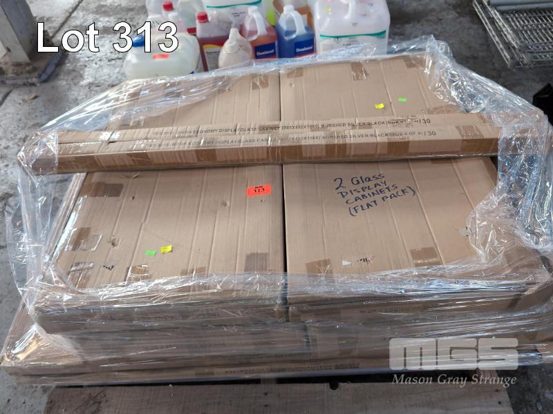 2 X GLASS DISPLAY CABINETS. FLAT PACKED. 1 X PALLET.