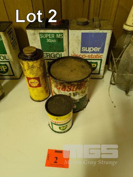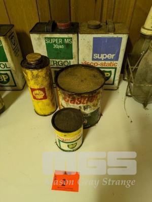 5 x ASSORTED OIL & GREASE TINS, INC 3 x BP 1 x SHELL & 1 x CASTROL