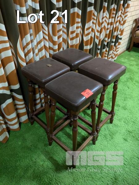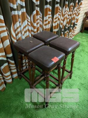 SET 4 COLONIAL STYLE BROWN VINYL BAR STOOLS
