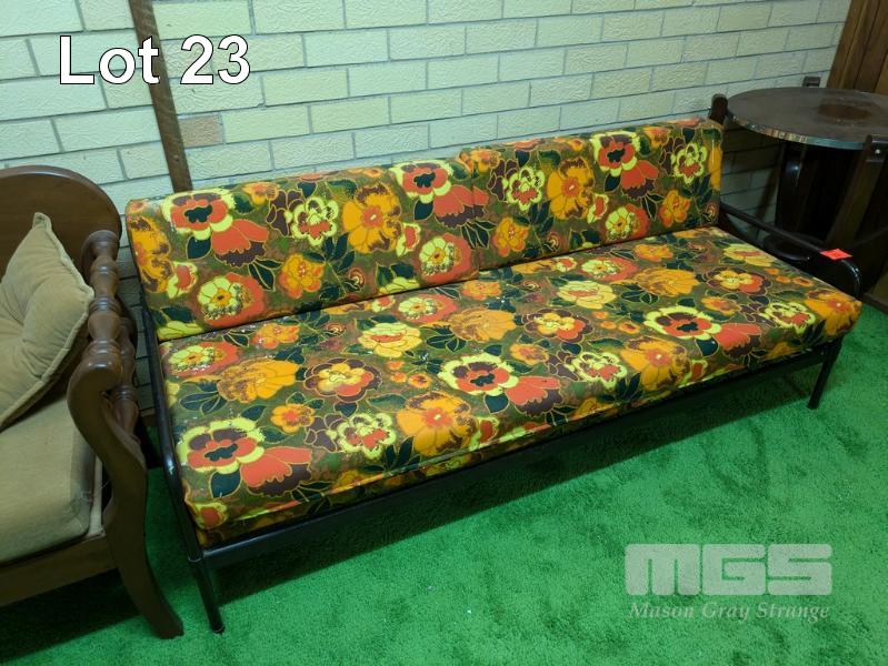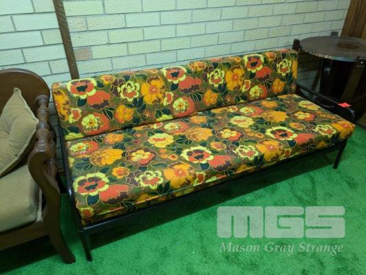 FUTON SOFA BED, STEEL FRAMED, FLORAL FABRIC