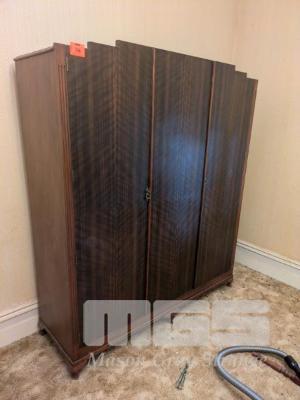 DECO BEDROOM SUITE COMPRISING 2 DOOR WARDROBE, 2 DOOR/4 DRAWER ROBE & MIRROR BACKED DRESSER