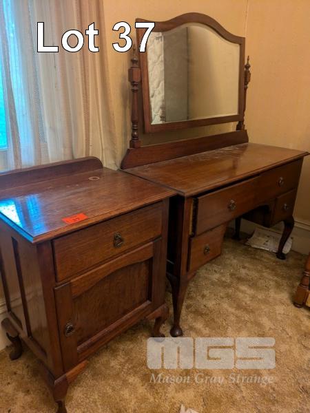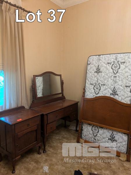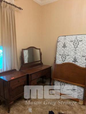 OAK BEDROOM SUITE COMPRISING MIRRORED DRESSER, BEDSIDE CABINET & SINGLE BED MATTRESS & HEADBOARD