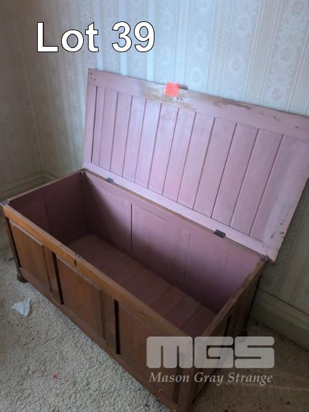 TIMBER LINEN TRUNK, SINGLE DOOR HINGED TOP