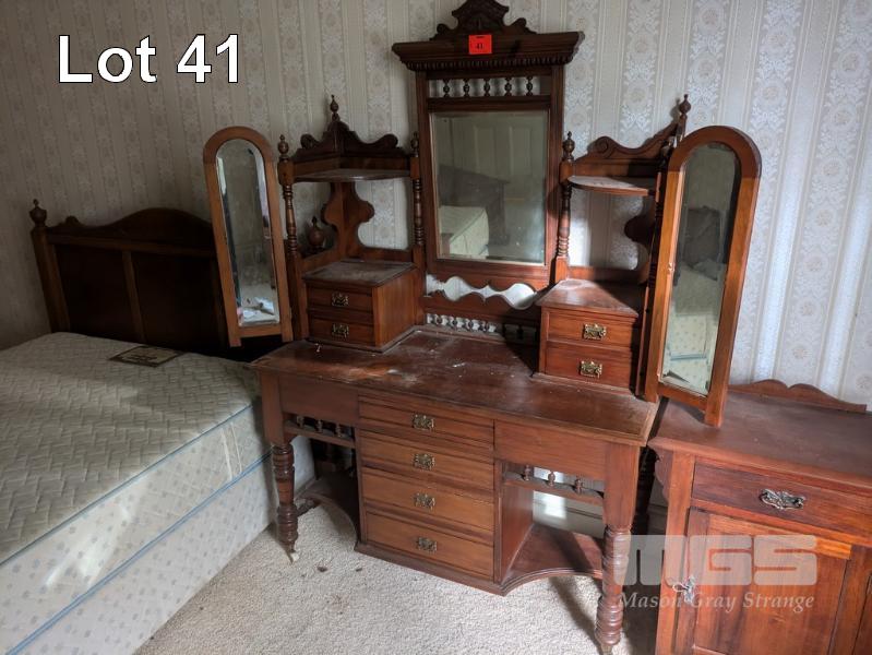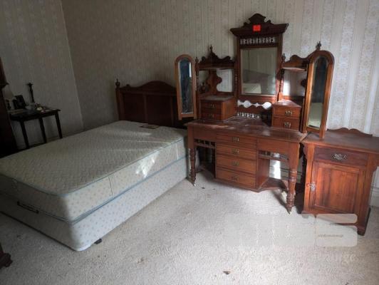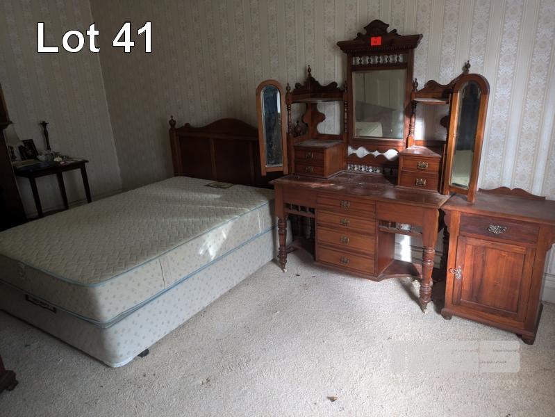 BEDROOM SUITE, EDWARDIAN STYLE COMPRISING DUCHESS DRESSER BEDSIDE CABINET & DOUBLE ENSEMBLE BED WITH BEDHEAD