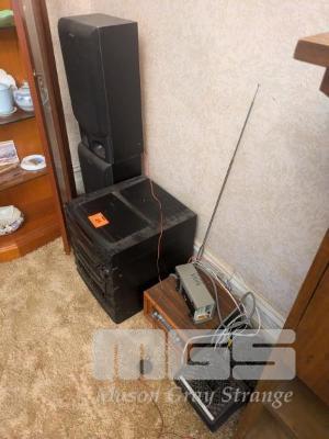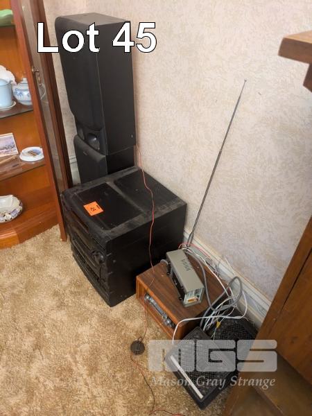 ASSORTED AUDIO EQUIPMENT,SONY SOUND SYSTEM & SPEAKERS & TIMBER CASED RADIO WITH CONTINENTAL SPEAKERS