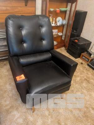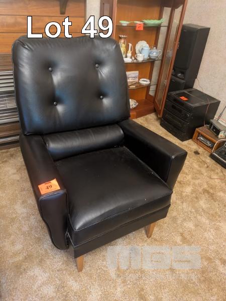 BLACK VINYL UPHOLSTERED FIRESIDE ARMCHAIR