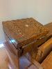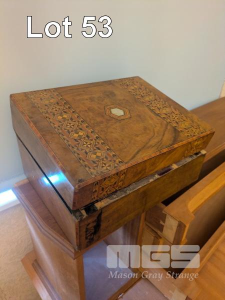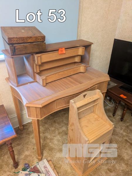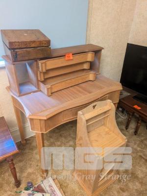 RAW TIMBER WRITING DESK & TIMBER WALL UNIT, (UNFINISHED PROJECTS), ANTIQUE INLAY TIMBER WRITING SLOPE, ALL FAULTS