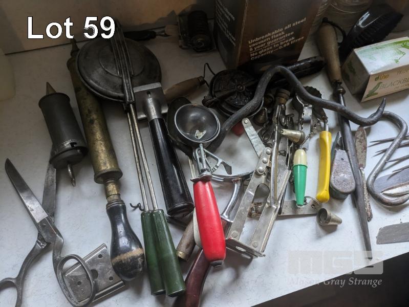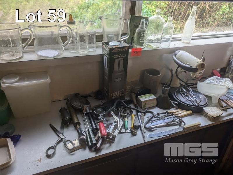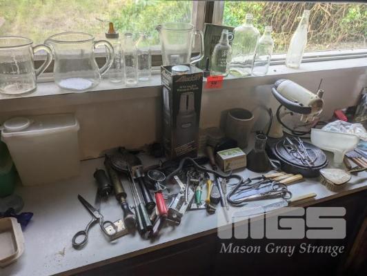 VINTAGE KITCHEN UTENSILS, VINTAGE JUGS & BABY BOTTLES, MIXER, ETC