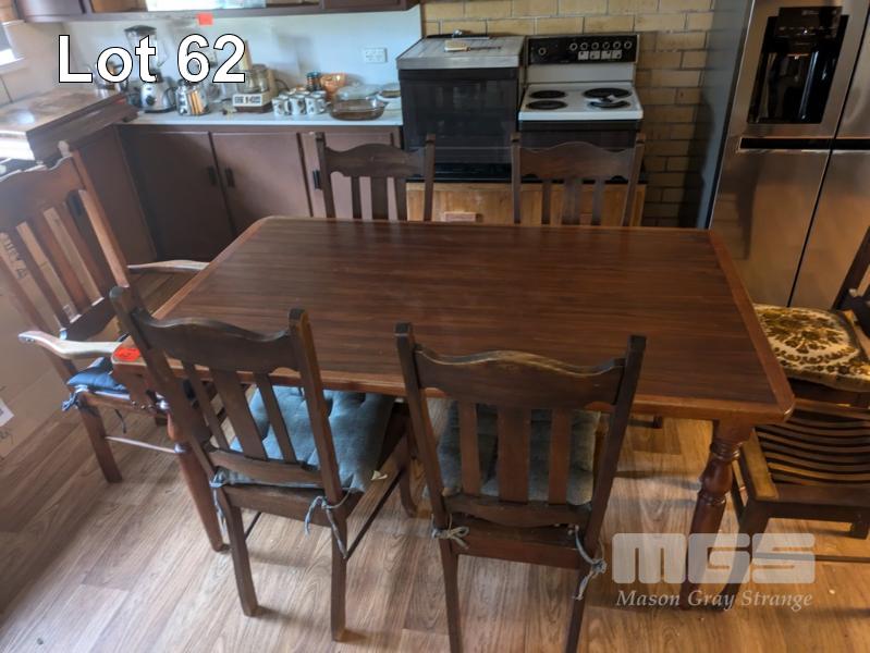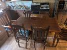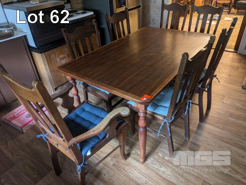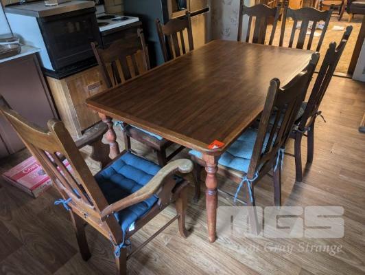 DINING SUITE, RECTANGULAR DINING TABLE & 7 x TIMBER DINING CHAIRS INC 1 x CARVER CHAIR