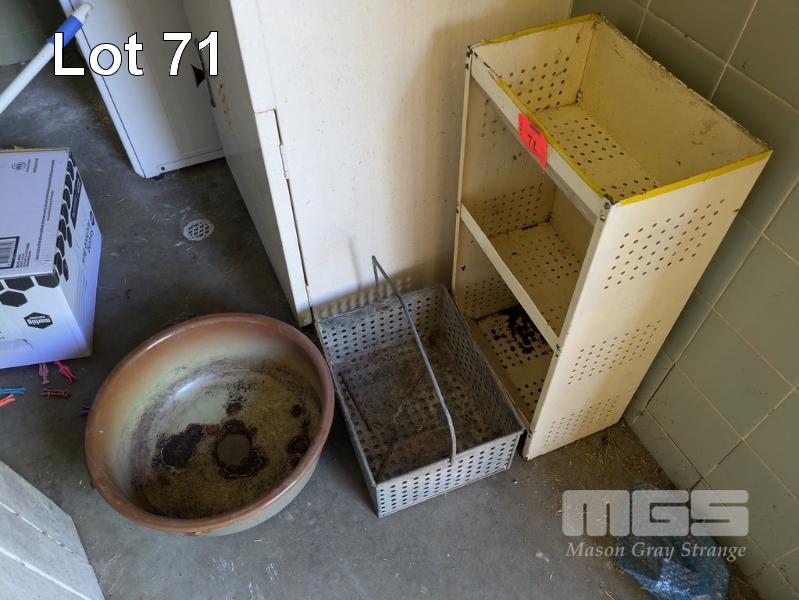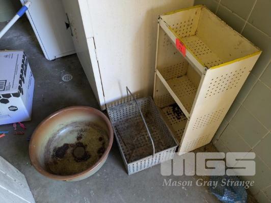 WILLOW VEGETABLE RACK, DIP TIN & ENAMELLED POT