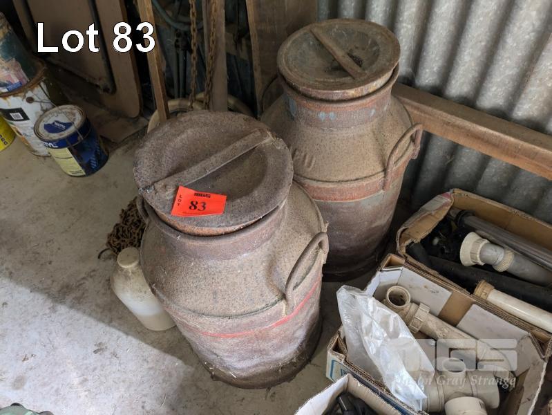 2 x STEEL MILK CANS WITH LIDS