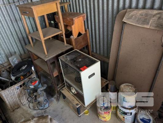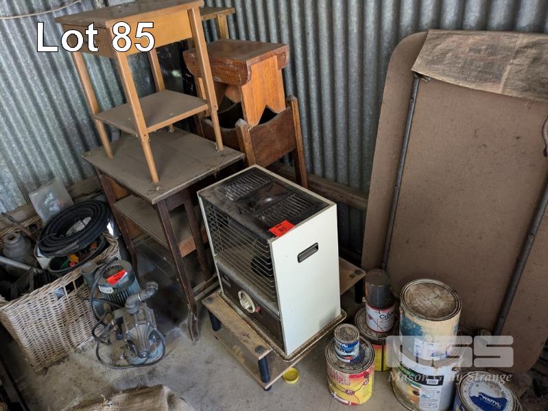ASSORTED PAINTS, TIMBER FURNITURE & STEEL FLASHING LENGTHS