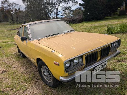 1978 NISSAN 200B GX SEDAN REG: SCX 485 (EXPIRED) ODO: 214,968kms SHOWING 4 CYLINDER PETROL, AUTOMATIC TRANSMISSION, YELLOW DUCO, 4 DOORS, POWER WINDOWS, CHASSIS: 810 ASX 3007 BEIGE VINYL ROOF ORIGINAL BARN FIND CONDITION RUNS & DRIVES (WITH 2 KEY/S, WITH OWNER'S MANUAL, WITH SERVICE BOOKS)