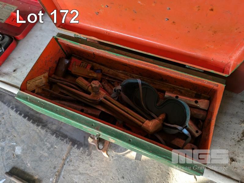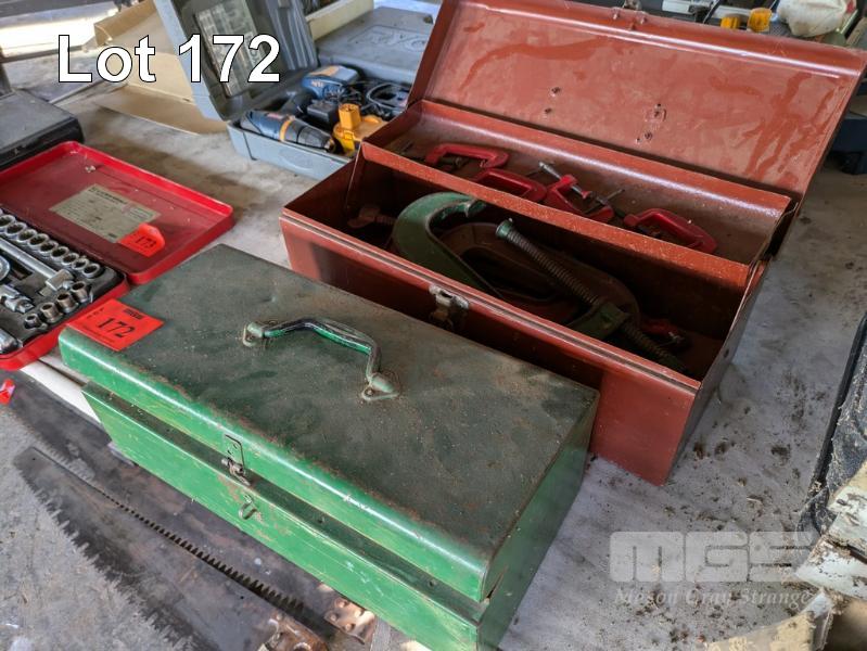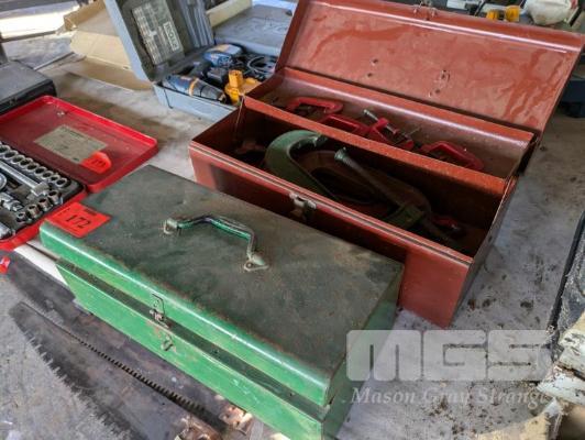 2 x TOOL BOXES & CONTENTS, CLAMPS, WELDING EQUIPMENT & HAND TOOLS