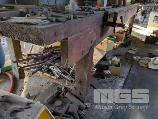 LARGE REDWOOD CARPENTERS BENCH FITTED WITH 2 x JOINERS VICES & BENCH VICE, 3900 x 1050mm