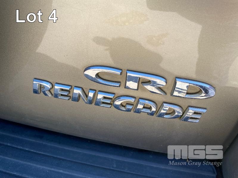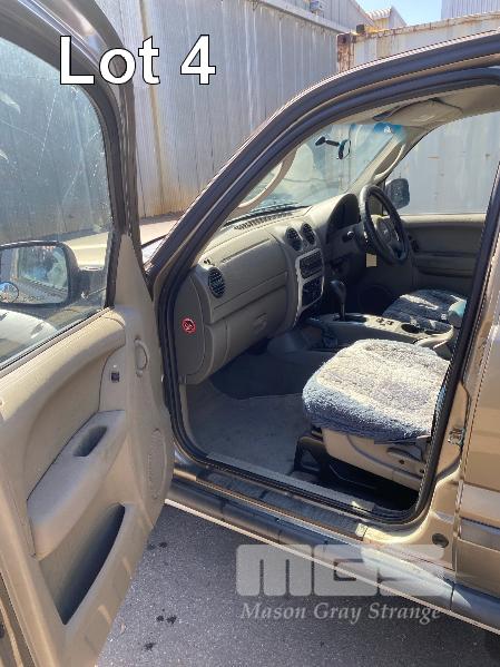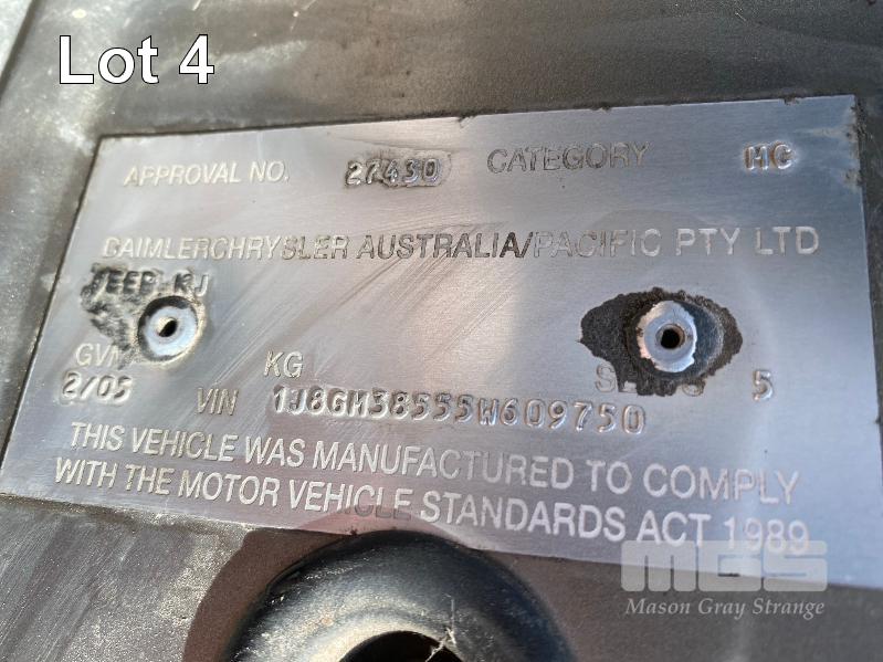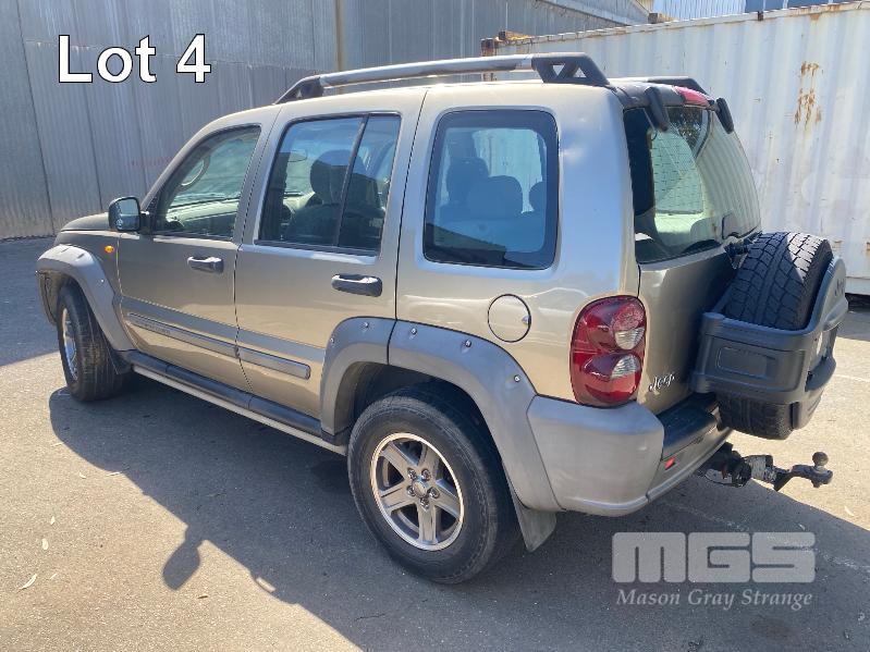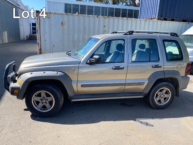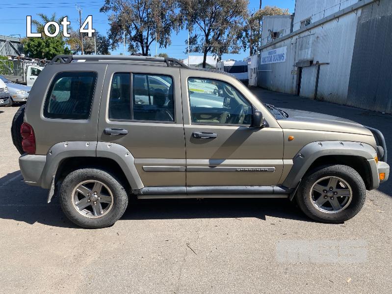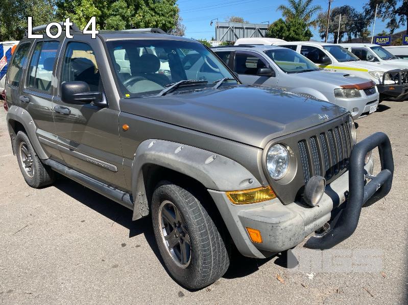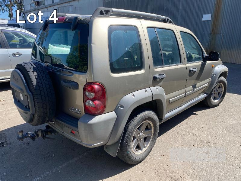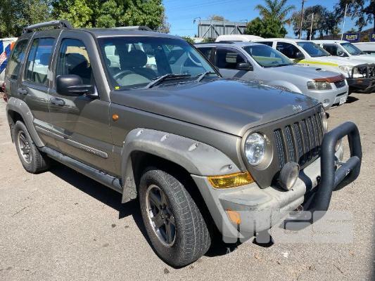 2005 JEEP CHEROKEE RENEGADE CRD SUV 4x4 REG: NO PLATES VIN: 1J8GM38555W609750 ODO: 375,434kms SHOWING 2.8 LITRE DIESEL, CRD, AUTOMATIC TRANSMISSION, METALLIC GOLD DUCO, 4 DOORS, 5 SEAT, 4x4 ABS, AIR BAG, AIR CON, ALLOY WHEELS, CD PLAYER, CENTRAL LOCKING, CRUISE CONTROL, IMMOBILISER, NUDGE BAR, POWER WINDOWS, SPARE WHEEL, SPOT LIGHTS, TOW BAR, KEY #3 PREVIOUS REGO NUMBER WAS XED 352 (WITH 1 KEY/S) CONDITION: MIRROR DRIVERS SIDE - BROKEN