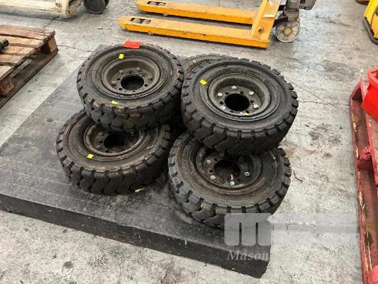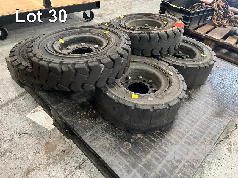 6 x SOLID FORKLIFT TYRES & RIMS, 18x7-8