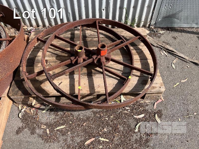 2 x VINTAGE STEEL SPOKED WAGON WHEELS,