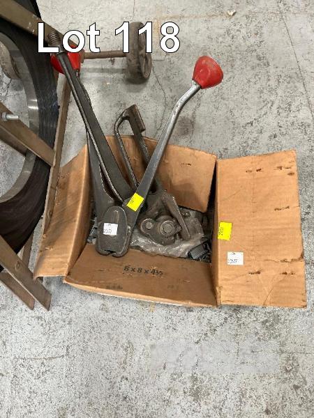STEEL STRAPPING TENSIONER & CRIMPER WITH STAPPING COIL DISPENCER