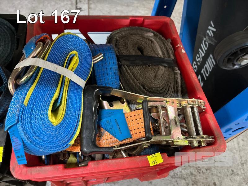 LARGE QUANTITY LOAD BINDER RATCHET STRAPS IN 2 x MILK CRATES
