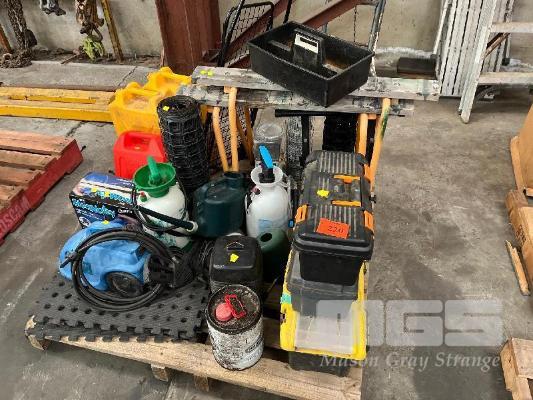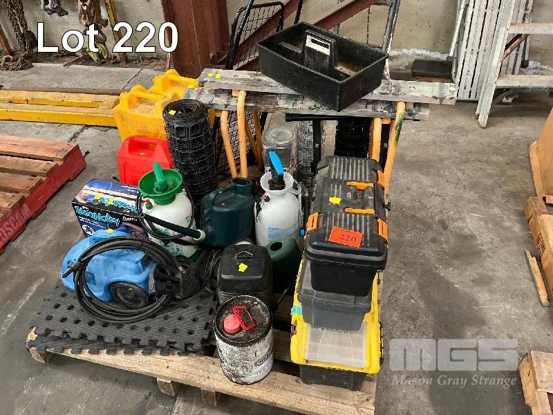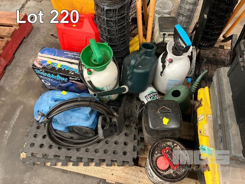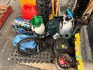GARDEN SPRAYERS, PRESSURE WASHER, 2 x WORK HORSES, TOOL BOXES, ETC