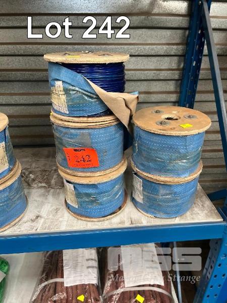 5 x ROLLS PVC WIRE CABLE. BLUE COATED