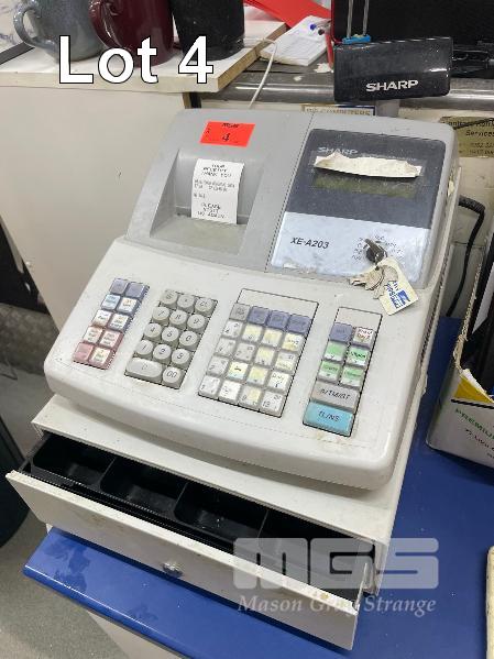 SHARP CASH REGISTER WITH CASH DRAWER, MOD: XE-A203, WITH KEYS, 240V