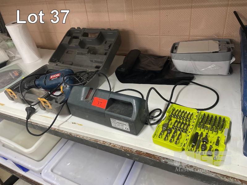 RYOBI 240V DRILL WITH RYOBI DRILL BIT SET & NIREY KNIFE SHARPENER, 240V