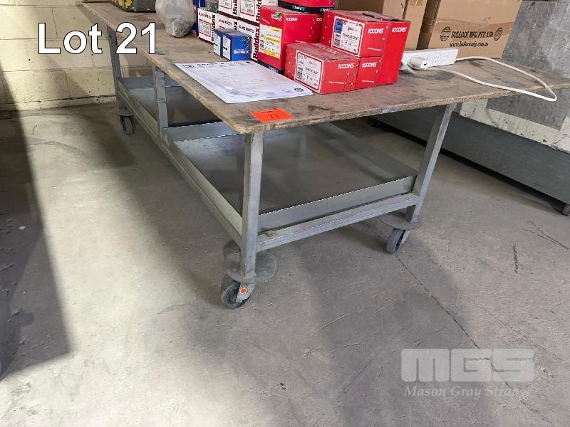 LAYOUT BENCH.TROLLEY, 2400/1200, PARTICLEBOARD, TUBE STEEL TRAY BASE