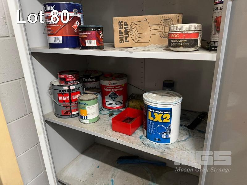 STEEL CABINET, 1800mm & TIMBER SHELF UNIT